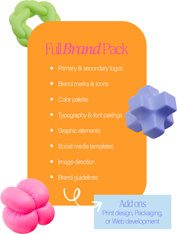 We believe in creating strategic brand systems that include supporting visuals, colors, and typography ensuring consistency and professionalism across your entire identity. However, if you’re looking for something smaller or specific, we’re happy to tailor a mini branding package or suggest one of our Glow & Go Kits as an alternative.